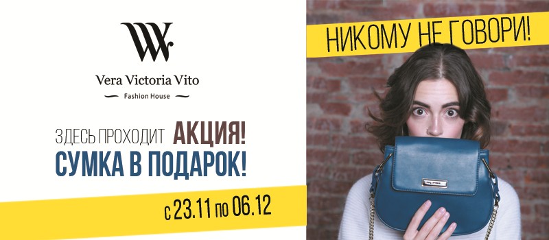 C 23 ноября по 6 декабря в сети магазинов Vera Victoria Vito и в интернет-магазине Botinki.net стартует акция «Никому НЕ говори! – здесь дарят сумочки»
